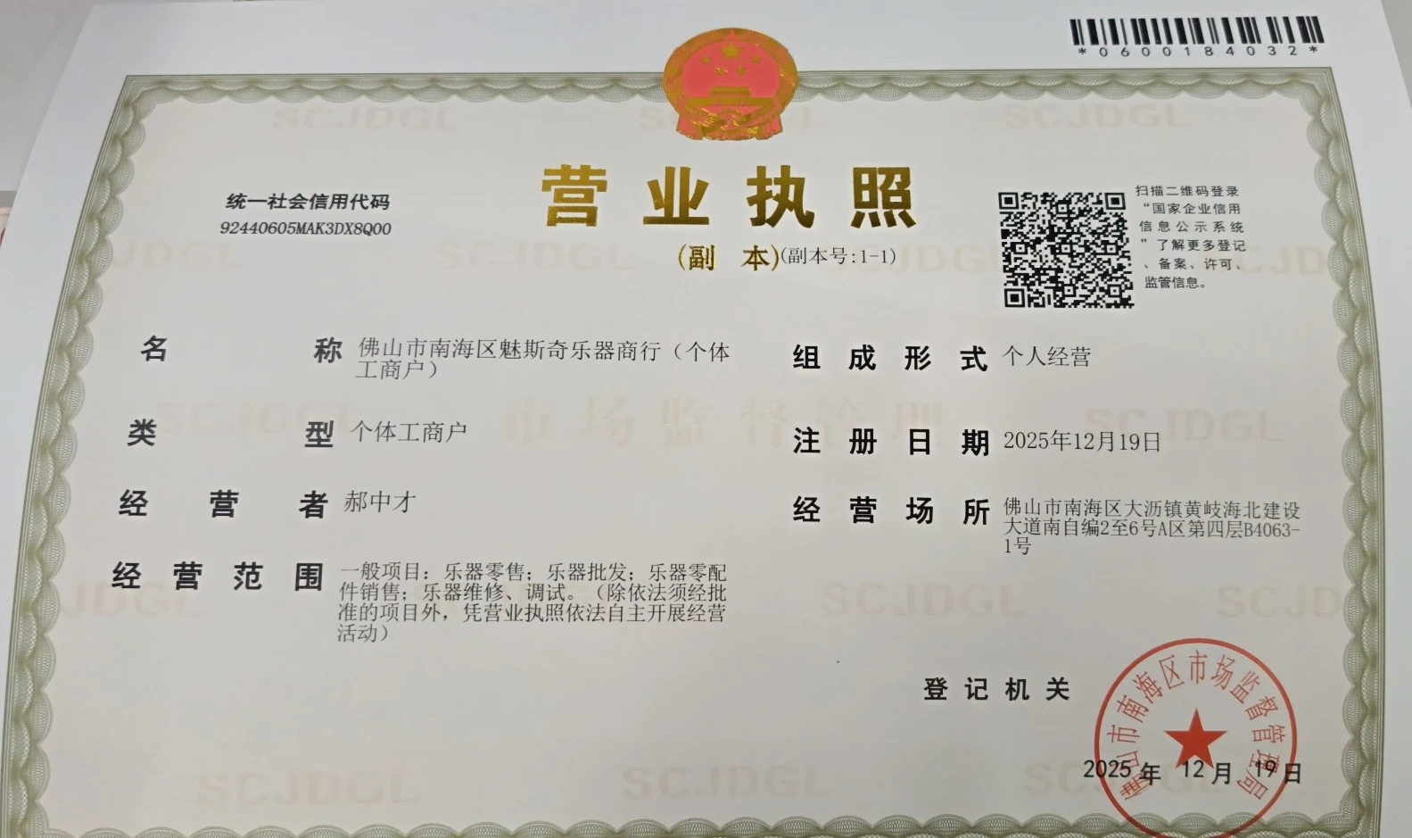 Company Name : Foshan City Nanhai District Moresky Musical Instrument Firm (Individual Business)